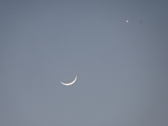 月の斜め上の方に、輝く星が確認できます。おそらく、金星と思われます。