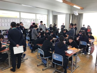 生徒は各自で考えたり,班で意見交換したりして理解を深めました。全教員が参観して事後検討会を持ち,授業力