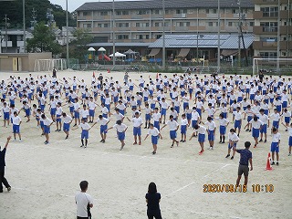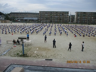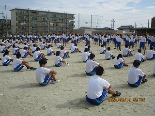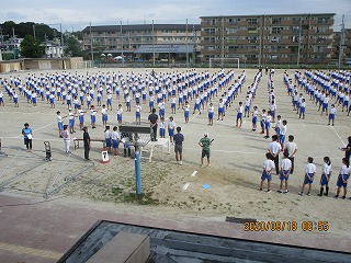 3学年、約550人が集まって、開会式や閉会式の確認、整列隊形の確認、全校ダンスの調整などを行いました。