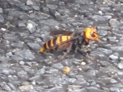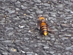 散歩中、スズメバチに遭遇しました。とはいっても道端で弱っている状態で、飛ぶこともできない様子でした。先日、下校中の生徒が蜂に刺される事故が起きたこともあり、スズメバチについて調べてみることにしました。