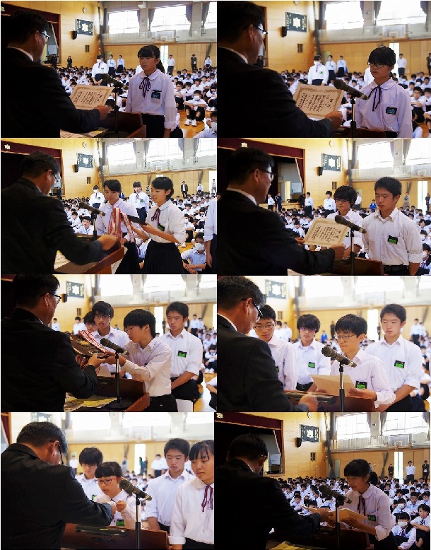 今日は全校集会で中体連新人大会の表彰伝達がありました。