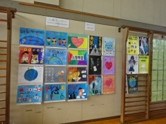 体育館には、地域の皆さまの作品が展示されていました。南中からは人権ポスターと人権ポスターを出展しました。