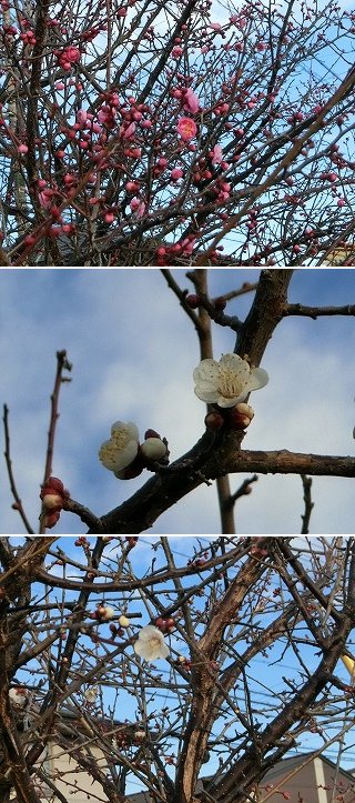 今日から長期にわたって寒気が入るようですが、西側の道路沿いにある梅の木もここ数日の温かさで咲き始めています。