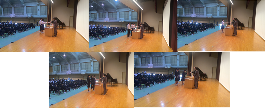 本日、5限目に全校集会がありました。そこで表彰伝達と卒業式に向けた合唱練習を行いました。