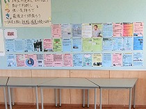 3階2年生のOS(オープンスペース)には、各クラスで高校調べを行ってまとめたものが私立、公立とそれぞれ張り出されています。