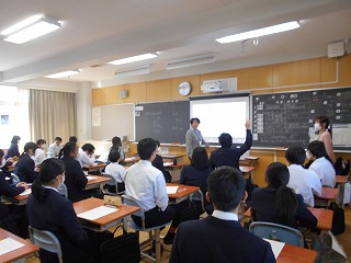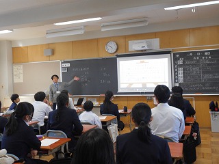 今日の2,3限目には、反差別人権研究所みえより荻田研究員に来校いただき、2年生向けに「メディアリテラシー講座」をしていただきました。人権フォーラムでも来校いただいたので、生徒たちは親近感をもって授業を受けることができました。はじめに「人権=すべての人がもっている幸せに生きるためのもの」という振り返りをしました。その後、便利なツールとしてほとんどの人が所持している携帯やスマホ等のSNSの正しい使用方法について、学びを深めました。これらの媒体は便利な反面、他人の人権をも奪ってしまう恐れのあるツールです。「誰も被害者や加害者になってほしくない」という願いからいろんな事例を出していただき、生徒たちはあらためて自分の生活を見つめる機会となりました。