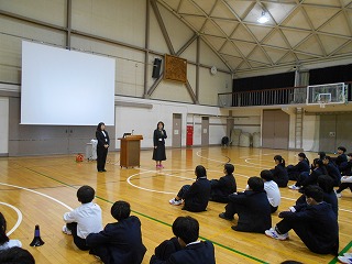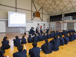 校長からは「今年は、港中3C計画を実行する」という話がありました。3つのCは<chance・change・challenge>訳すと、チャンスをつかんだら、変化して、チャレンジをする年にしていこう!というお話しがありました。