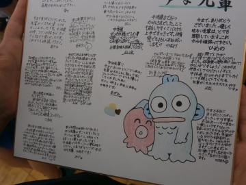 その後は、1、2年生から3年生に色紙を渡しました。