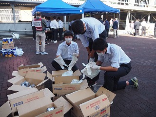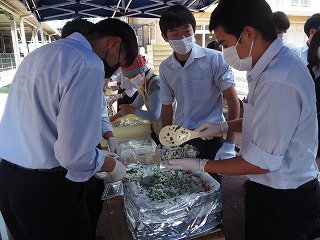 最後に防災用に備蓄されているアルファ米が参加者全員に配付され、中学生はお昼に食べました。