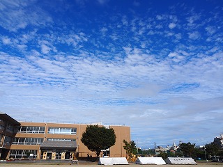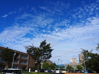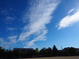 空を見上げると、上空には秋を代表する雲「うろこ雲」(巻積雲)が見られました。