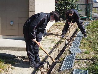自分たちの教室や廊下などを念入りに掃除したり、運動場の側溝に落葉がいっぱい詰まっているのを取り除いてくれました。