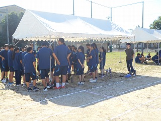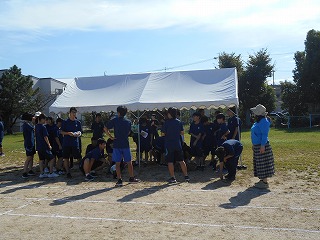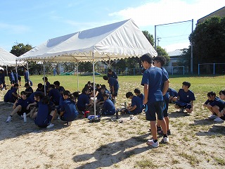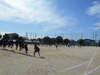 今日の1限目には、生徒会種目「大縄跳び」の練習試合を行いました。各群が2チームに分かれて、3分間跳びます。制限時間内で2チームが跳んだ回数で勝敗を決めます。どの群も大きな声で、心を合わせて跳べるようになってきました。最後の各群の反省会では、実際に跳んでいる動画を見直して修正点を話し合う姿も見られました。