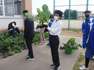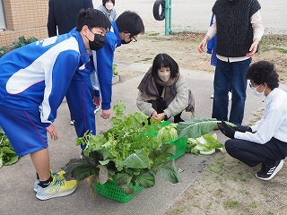白菜、ブロッコリー、ラディッシュなどを収穫しました。