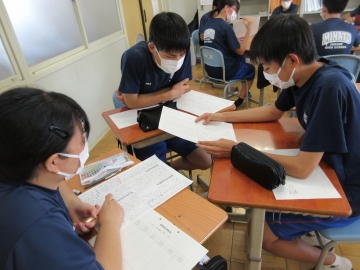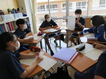 3年生は先日まで作成していた修学旅行新聞ができましたので、各学級で新聞発表会を行いました。