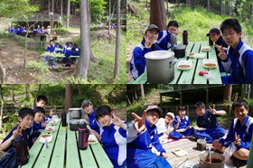 10時過ぎにはすべての班が食べ始めました。かなり上にあるテント設置場所まで行って食べているところもあります。みんなとても楽しそうです。