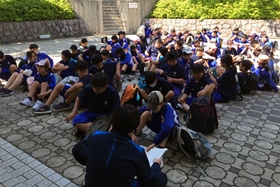 到着しました。予定よりかなり早い時間です。かなり高い気温の中、みんな、本当によく歩きました。