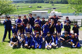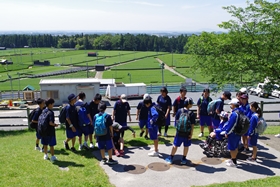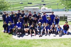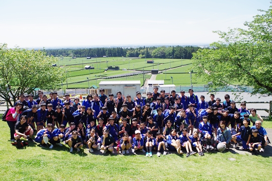 芝生の斜面を使って、まずはクラス単位で写真撮影をしました。。最後に学年全員で撮りました。真っ青な空と素晴らしい緑の中、とても素敵な写真が撮れました。
