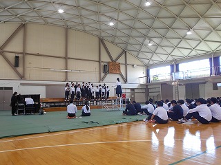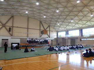 文化祭の取り組みの一つとして、縦割りリハーサルがありました。これは1~3年のA組、B組の縦割りで合唱を聞きあう取り組みです。先輩、後輩の合唱を聞くことで自分たちのよさ、足りないところに気づき、合唱をより高めていく取り組みです。体育館で実際に聞いてみると大きな発見があり、本番のような緊張感も味わうことができます。文化祭の本番まであと約1週間、次の学年リハーサルに向けて、気付きを活かしていきましょう。