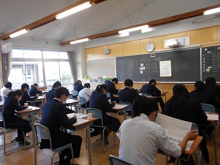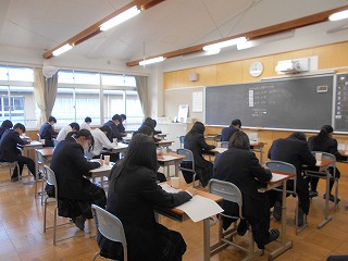 今日は、3年生の「卒業テスト」2日目です。1限目はデッサンもあり、陰影を意識しながら回答する姿が見られました。いよいよ、明日は「卒業テスト」最終日です。3年間のまとめとして、全力で取り組んでください。