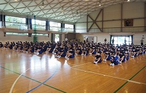 みんな元気に登校し、2学期の始業式が体育館で行われました。