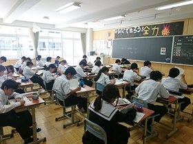 今日の6限目の補充の時間は、目前に迫った中間テストのための全校一斉でのテスト勉強の時間でした。学年の所属に限らず、授業担当者が教えているすべてのクラスを巡回しますので、テスト勉強を進めていて分からないところなどを気軽に質問できます。この土日は自然教室の疲れが残っていた人も多かったと思いますが、初めての定期テストということで頑張って勉強に打ち込んだ人が多かったようです。あと3日、しっかり頑張ってほしいと思います。