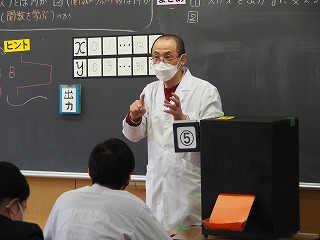 今日は千田先生に「関数とは何か?」「関数の考察対象は何か?」「なぜ関数を学ぶのか?」とテーマに、自作の教具を使って、ユーモアたっぷりに授業をしてもらいました。