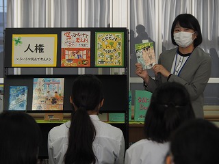 今日のブックトークは学校司書の稲垣さんから、特に人権にかかる本を紹介していただきました。