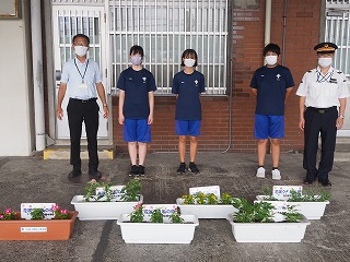 先日、2年生が「花いっぱい運動」でたくさんのプランターに花を植えましたが、昨日は2年生の学級委員さんたちがその一部をJR四日市駅に寄贈してきました。