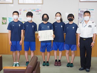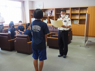 そして、今日はそのお礼として駅長さんが感謝状をもって来校され、生徒会本部役員さんが全校生徒を代表して受け取りました。
