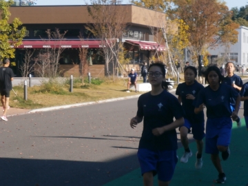 駅伝部は、今日土曜日、朝中央緑地公園に集まって練習をしました。