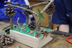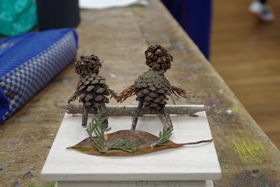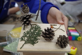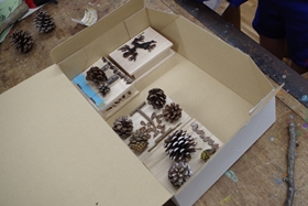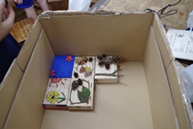 ネイチャークラフトが終了しました。作品は段ボール箱に入れて学校へ持ち帰り、後日1階中央廊下に展示する予定です。