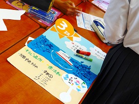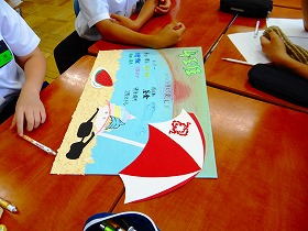 本日6時間目は、班ポスターづくりを行いました。これまで2時間かけてつくってきたので、今日完成する班もいくつかでてきました。夏らしい班ポスターがたくさん並びそうです。