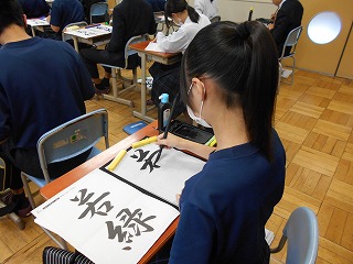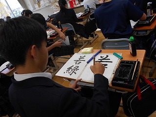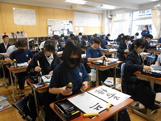 今日の2年生の国語科では、書写の練習を行いました。筆の持ち方、押さえ方、はらい方から書き順まで、日本の伝統的な文化をしっかりと学ぶ機会となりました。生徒たちは、落ち着いた雰囲気の中で、丁寧に筆を進めることができました。