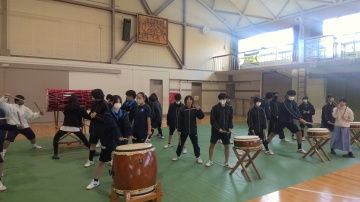 諏訪太鼓講演会があり、実際に諏訪太鼓を叩く体験をさせていただきました。キャリア教育として、地域の方から歴史について教えていただき、太鼓の叩き方も練習させていただきました。普段見ている楽器とは違い、太鼓の大きさ、響く音がとても素敵でした。浜田地区子供会育成者連絡協議会の皆様、ありがとうございました。