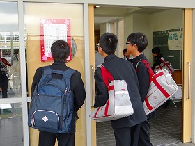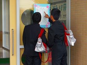 今日は、8時には多くの生徒が新クラスの発表を待っていました。発表されると友達とお互いのクラスを確認しあっていました。