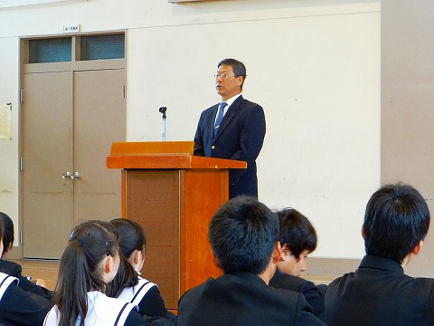 校長先生の話では、心で人の話を聞くこと、元気よくあいさつをすること、ルールやマナーを守り行動することの3つのことを大切にするようにと話されました。