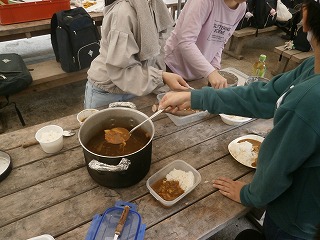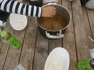 出来上がったのは”おいしそうなカレー”。どの班もみんなで協力して一生懸命作りました。世界でここにだけのカレーライス、みんなと一緒に、いただきます。