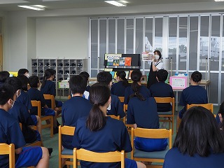 昨日と今日で、学校図書館司書の西川さんによるブックトークが全学級でありました。