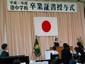 昨日は、第69回港中学校卒業式が行われました。