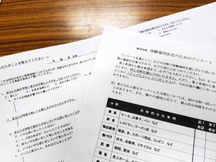 職場体験のアンケートは、希望の職種を第3希望まで選び、希望する理由や意気込みなどをアンケートに記入しました。今後、これらを参考にして受け入れ人数を調整していきたいと思います。また、教育相談アンケートは中間テスト後に行う個別の教育相談を行うための資料となります。生徒一人ひとりの悩みやその解決に向けて役立てていきます。