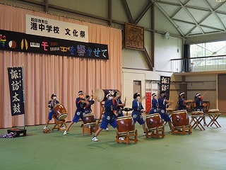 まず、諏訪太鼓の勇壮な演奏と生徒会役員のオープニングで文化祭が始まりました。