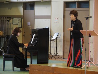 午前の最後は、英語科のスピーチコンテストの発表があり、馬場先生よるミニコンサートがありました。