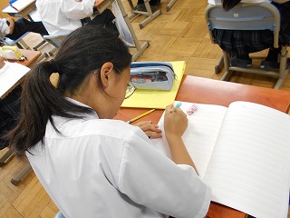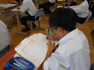 今日の1年生の英語科では、「曜日」の学習から入りました。普段何気なく発音をしていても、いざ「書く」となると難しく感じられます。今日は日曜日から土曜日まであらためて発音とスペルの確認をしました。また、市教育委員会育ち支援課より林指導主事と特別支援教育・相談グループの西村グループリーダーにも来校いただき、より効果的な指導法についてのアドバイスもいただきました。