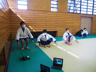横受け身、後ろ受け身、前回り受け身)の練習をしています