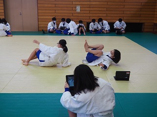 今日はこれまでの練習の成果を確認するために、他の人にタブレットで受け身の様子を撮影してもらい、良いところ、直すべきところをチェックしていました。