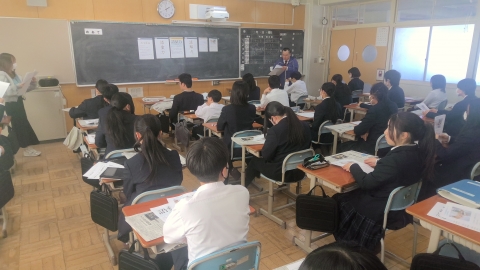 本日5限目に、中日新聞社から、井上さん、黒川さん、山崎さんに来ていただき新聞を使った授業をしていただきました。