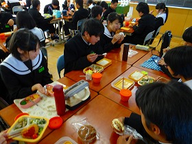 (テスト後のおひるごはんの様子です。みんな楽しそうに食べていました。)