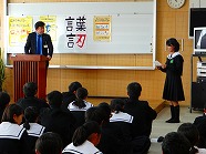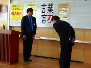 お話の中で、時間を守ること、あいさつや返事をしっかりすること、言葉使い、服装や身だしなみについて、これからの普段の生活から気を付けていこうと話をされました。