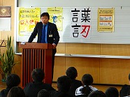 今日の6時間目は、株式会社ワークスの社長である水谷昌幸さんに講演をしていただきました。内容は「職場体験学習におけるマナー教室」と題して、これから行く職場体験学習におけるマナーについてお話をしていただきました。