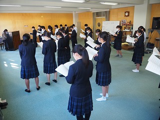 3年生が卒業式までに登校するのはあと24日だということで、音楽の授業では卒業式に歌う式歌の練習が始まっています。